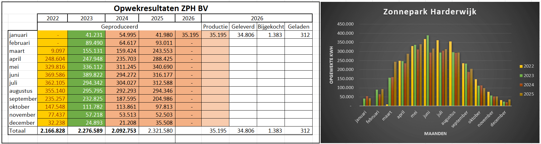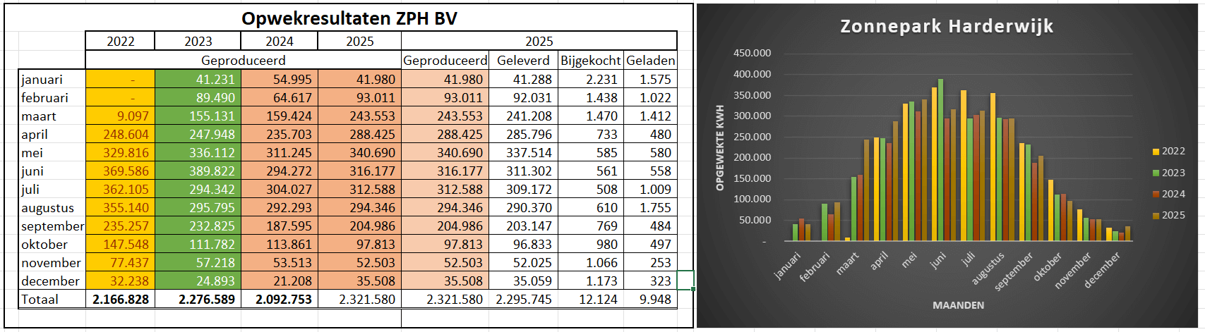 De opwekresultaten tot nu toe: